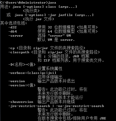 出现上方图片的内容,java环境就安装完成了。