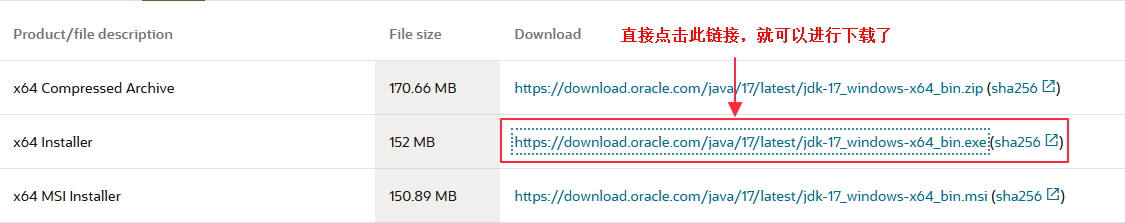 注意:下载是不收费的,但是需要你登陆一下oracle的账号,如果没有账号,需要自己注册一个。(JDK8需要登录,JDK17是不需要登录的,可以直接下载。)