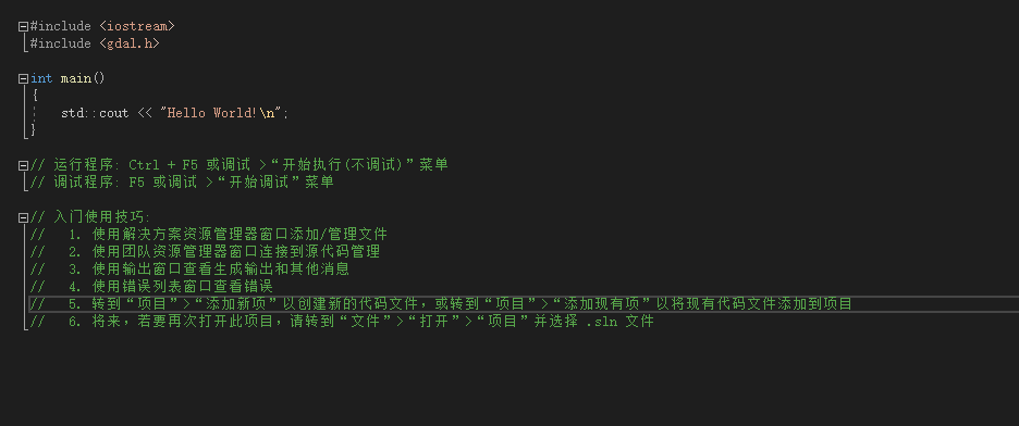 新建一个C++控制台应用程序,在原有基础上加入#include <gdal>,编译通过,说明你已经安装成功啦!