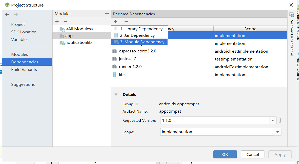 implementation 'androidx.appcompat:appcompat:1.1.0'compileOnly:仅仅在编译时使用,但最终不会被编译到apk或aar里