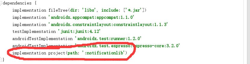 implementation:它就会自动把这个包下载下来,并且引用它。节省git空间,而且修改版本也很方便。implementation fileTree(dir: 'libs', include: ['*.jar'])