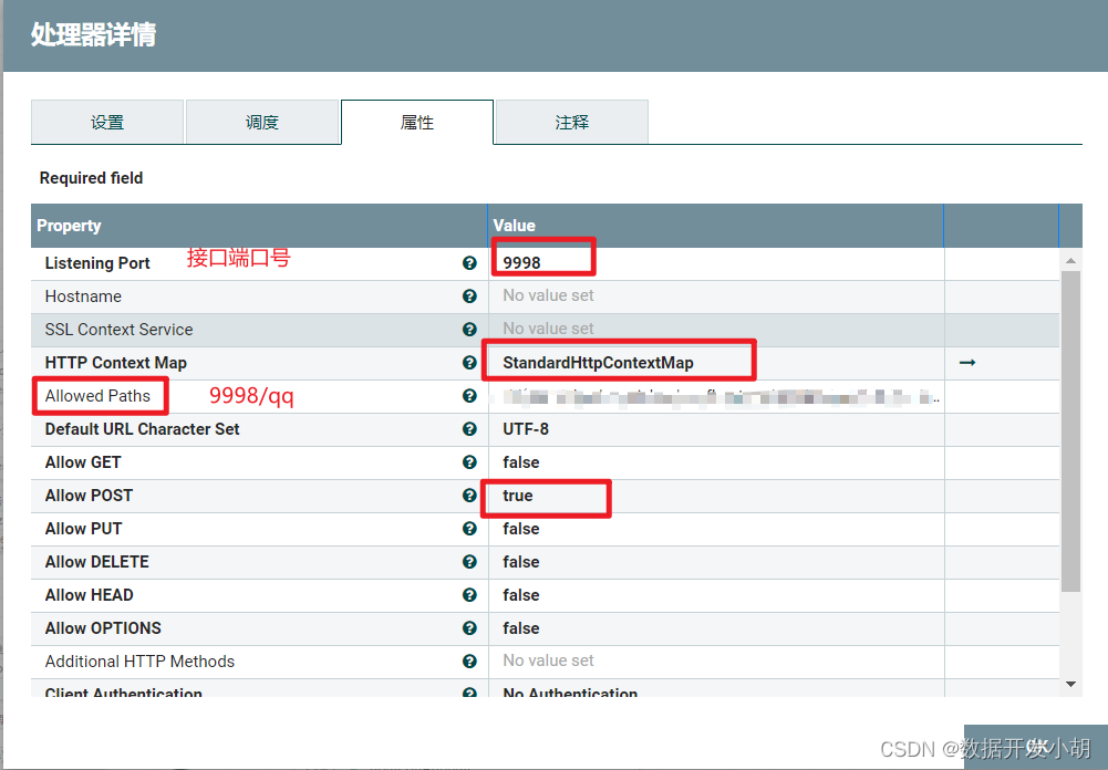 - 用于上游数据传输到nifi设置接口功能组件,启动一个http的端口。