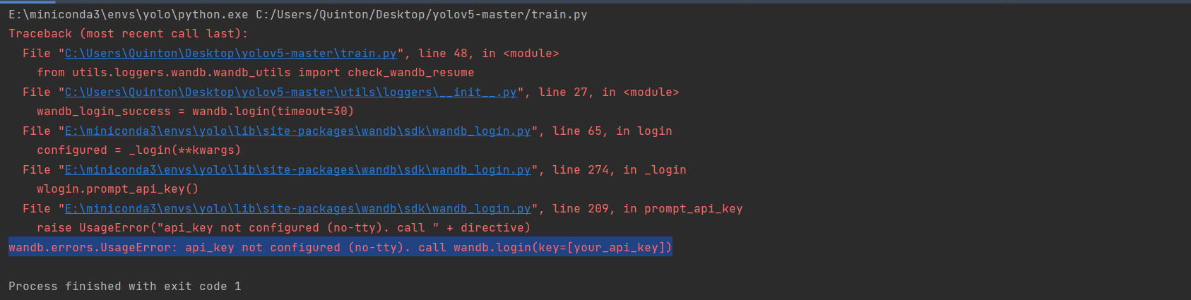 如果出现这样的报错wandb.errors.UsageError: api_key not configured (no-tty). call wandb.login(key=[your_api_key])