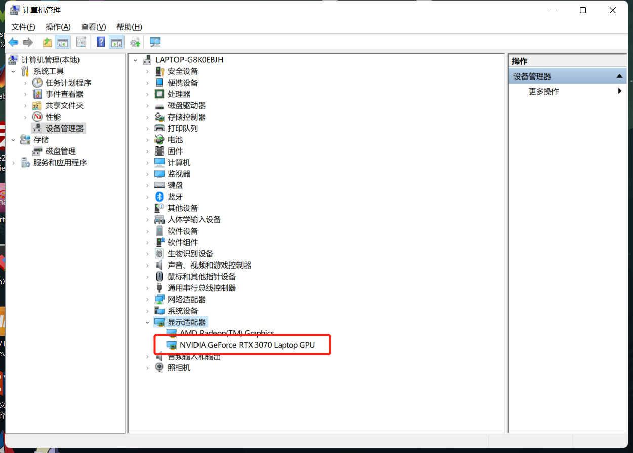 查看是否有英伟达显卡:计算机右击–>管理–>设备管理器–>显示适配器
