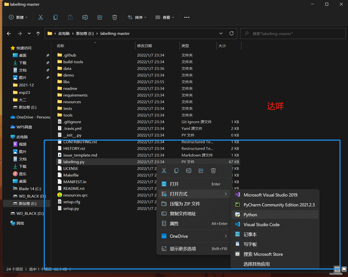 打开项目源码后便是这样的(我的pychram主题跟随系统为暗色,如果打开为浅色主题不必在意