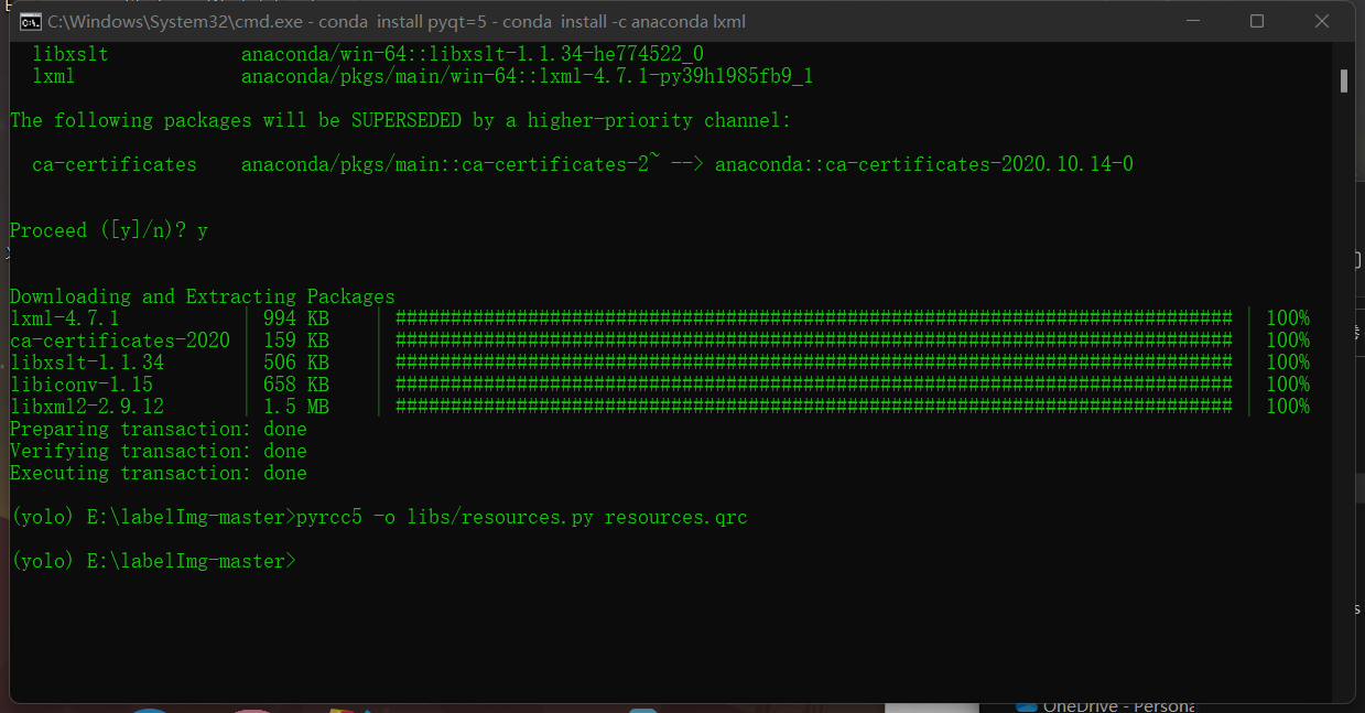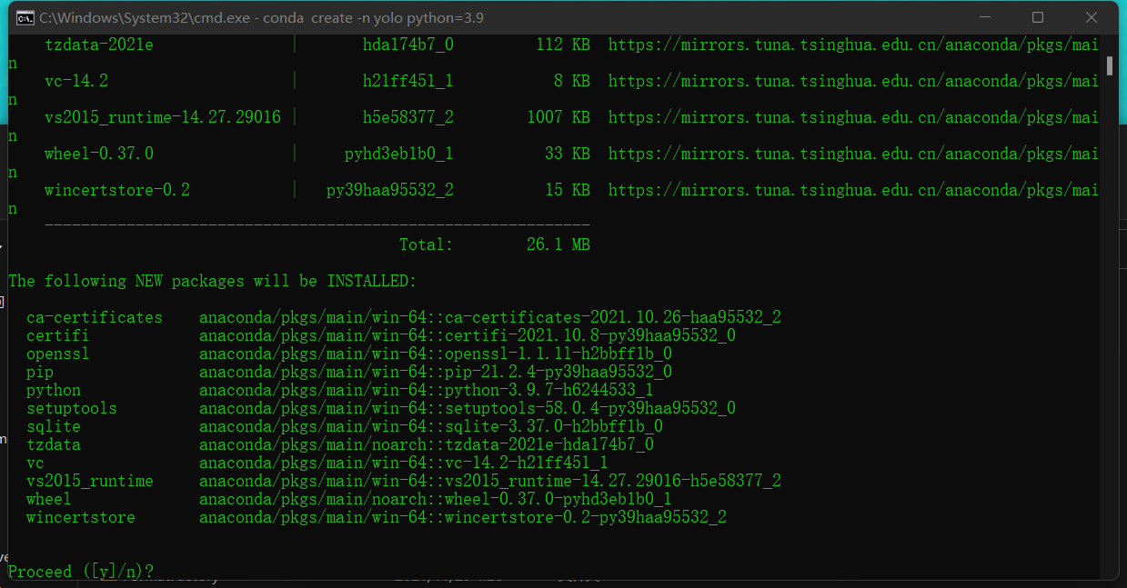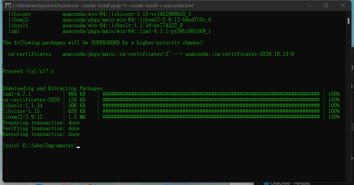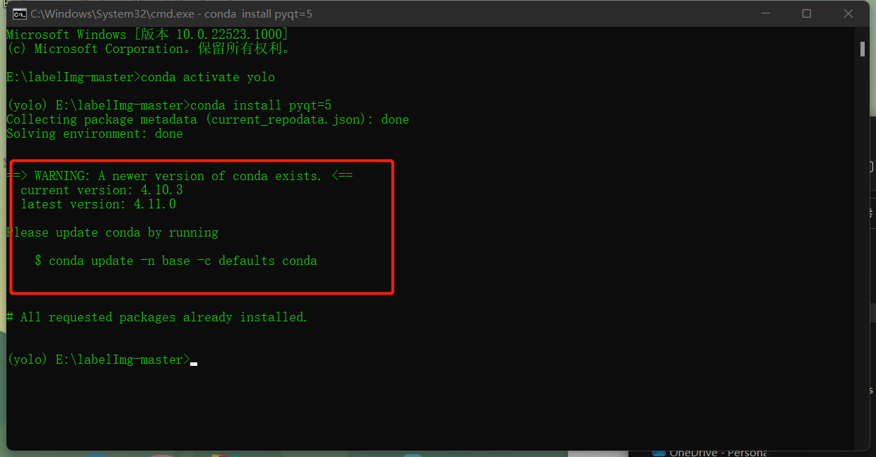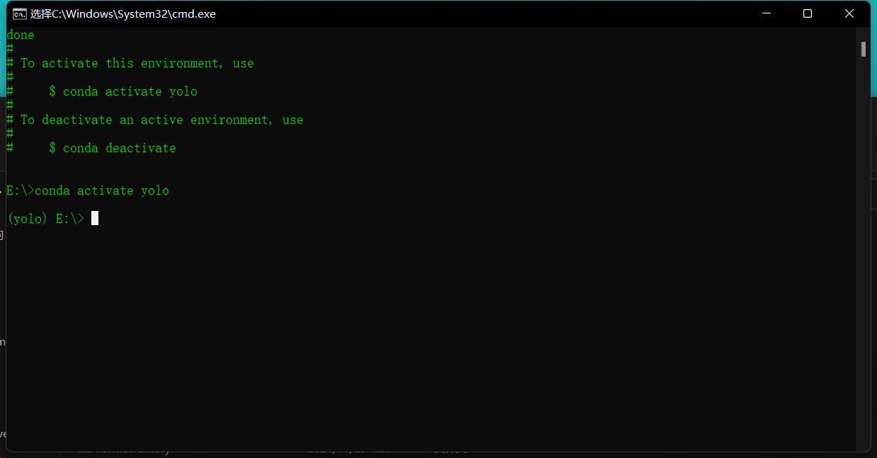 yolo是创建的环境名称(名称可以自己定,不一定像我一样用yolo)