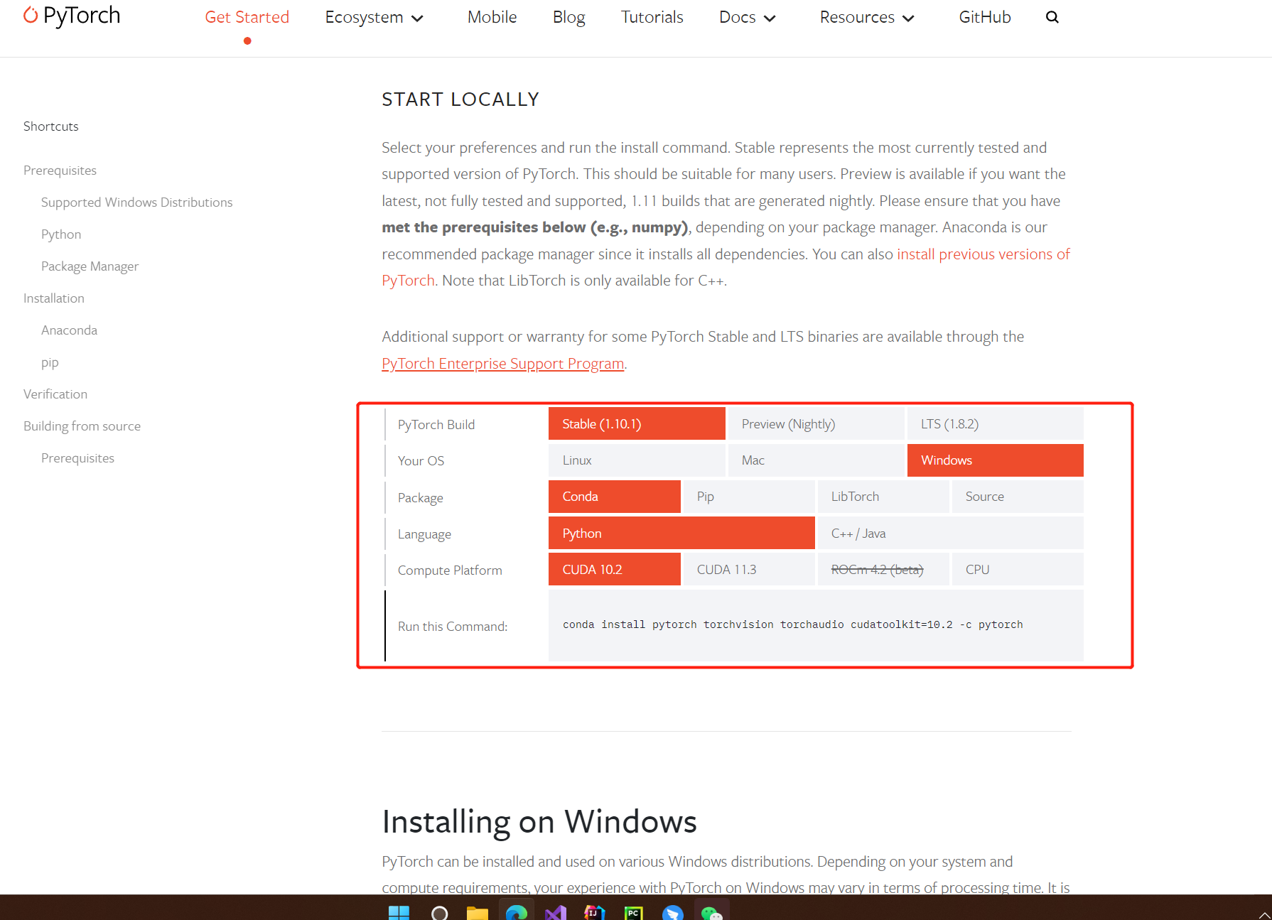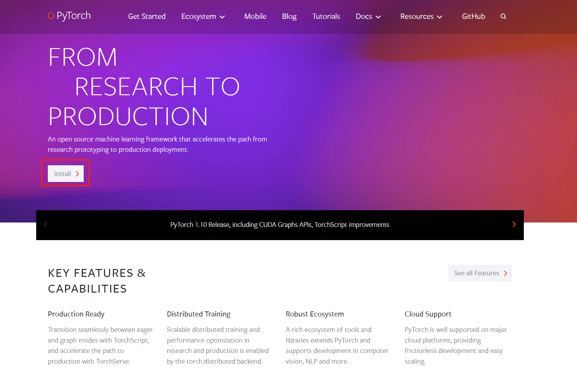 PyTorch官网:PyTorchhttps://pytorch.org/进入官网,选择install进入下一页面