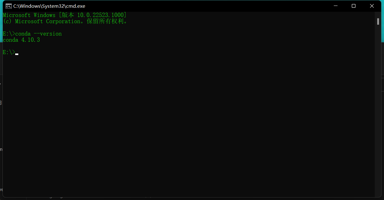 使用 conda --version 命令查看conda版本并验证conda是否安装成功
