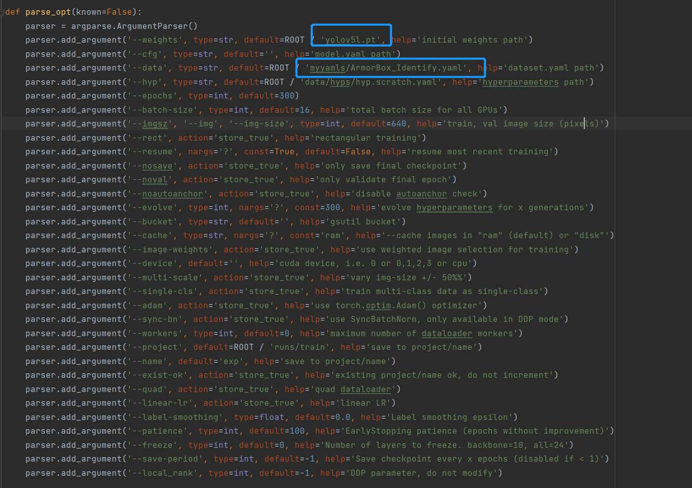 这里的预训练模型文件建议使用yolov5l.pt,兼顾速度和准确率