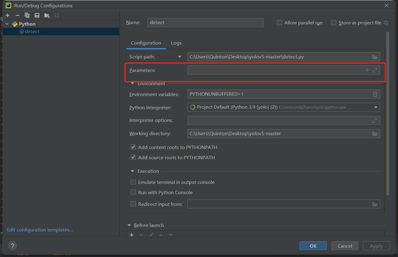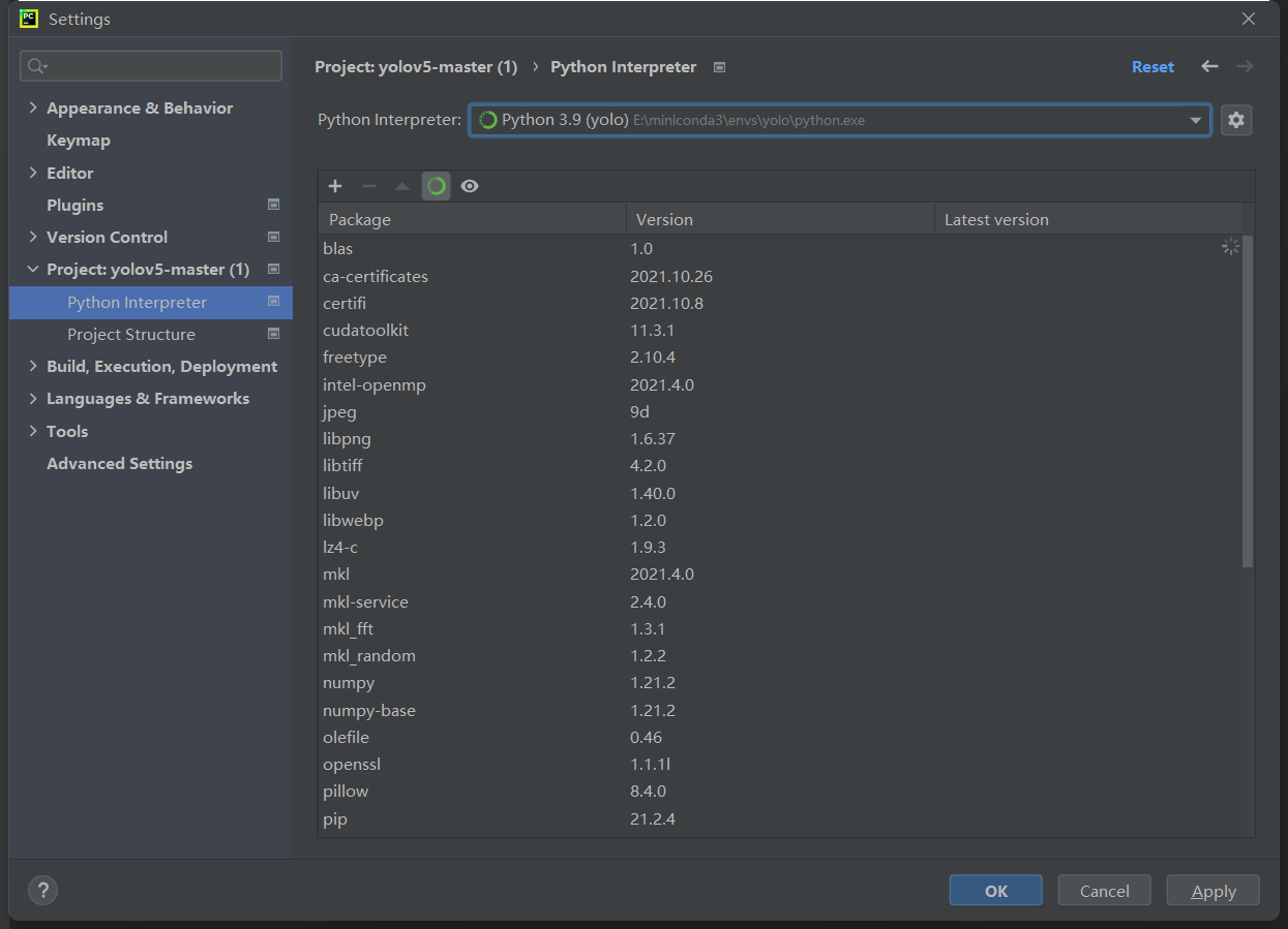 这样就把Conda虚拟环境加载到yolov5项目上了