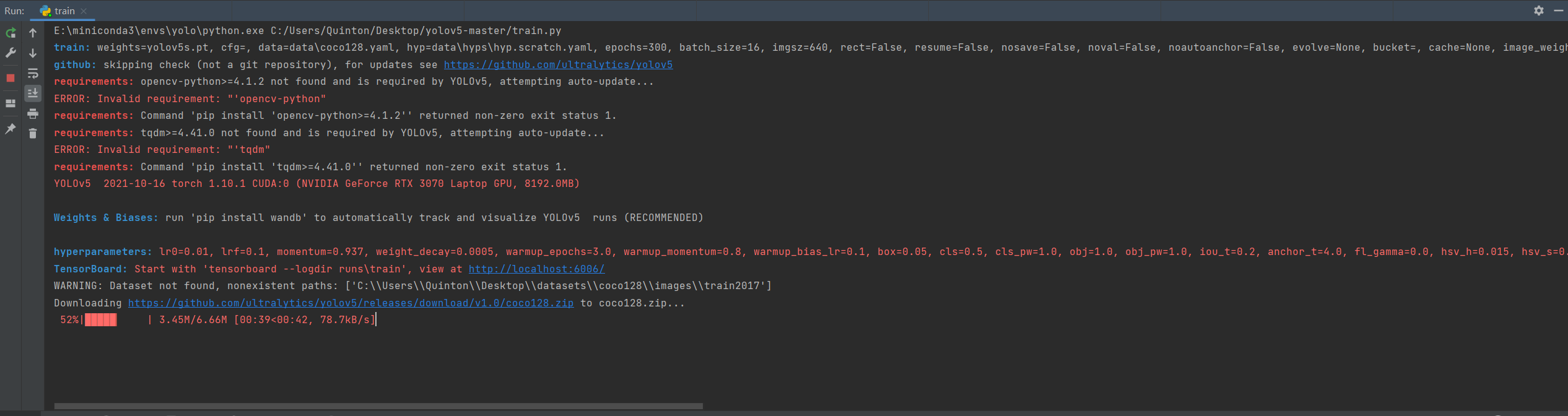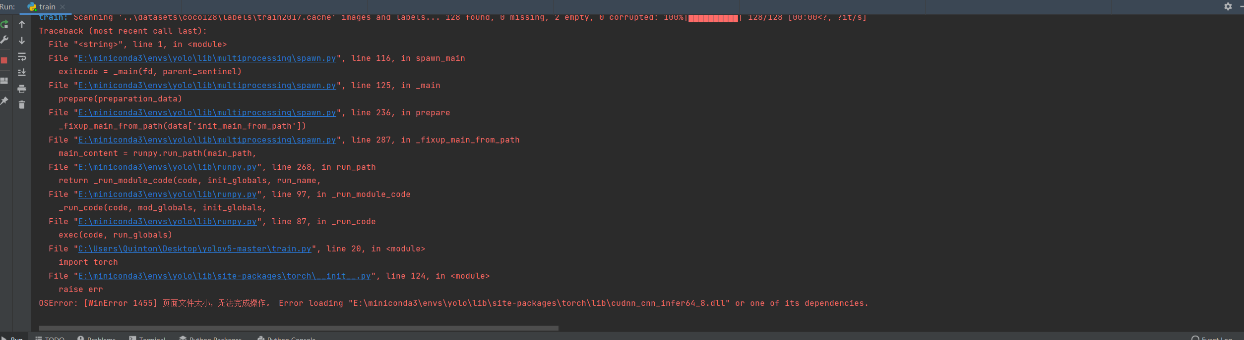 其它报错可以参考这篇博文解决:(45条消息) yolov5初次使用的踩坑记录_Jancoyan-CSDN博客