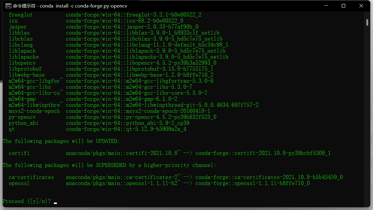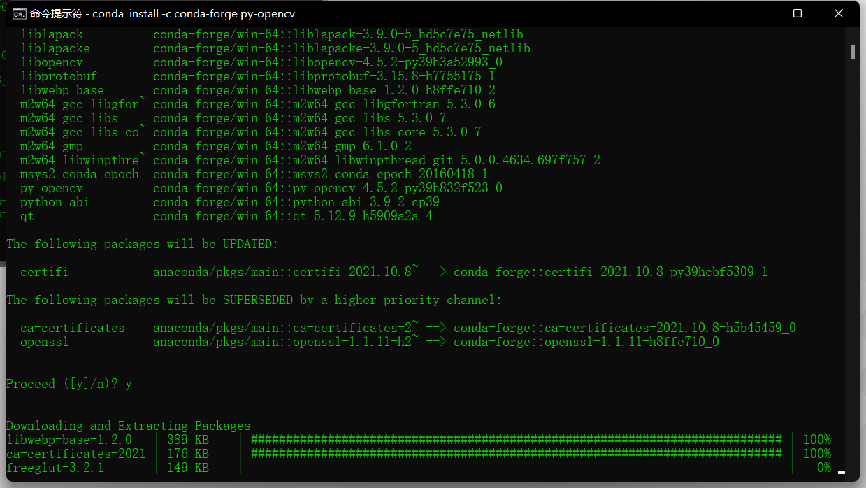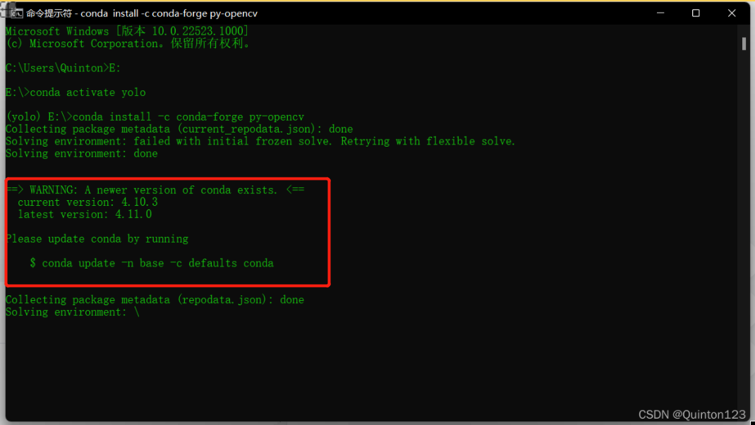 如果出现这行WARNING,不用在意,这里只是提醒更新conda