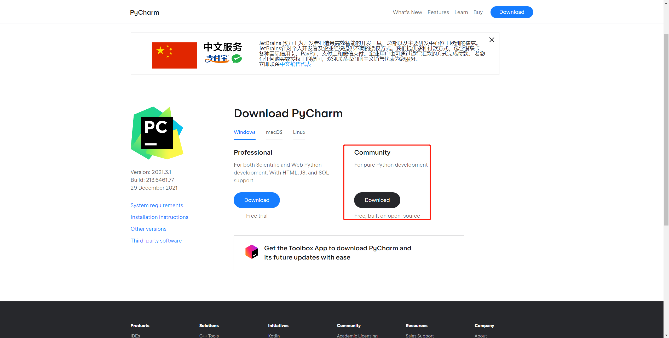 官网网址:PyCharm: the Python IDE for Professional Developers by JetBrains