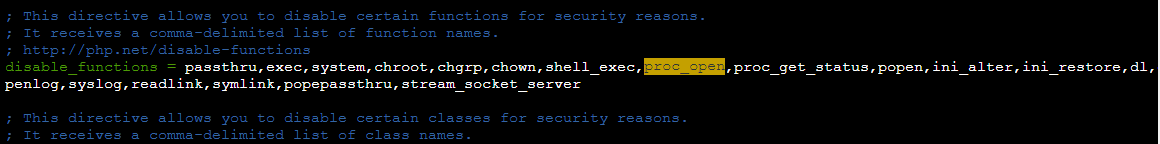 打开后,搜索 disable_functions 项,看是否禁用了proc_open函数。