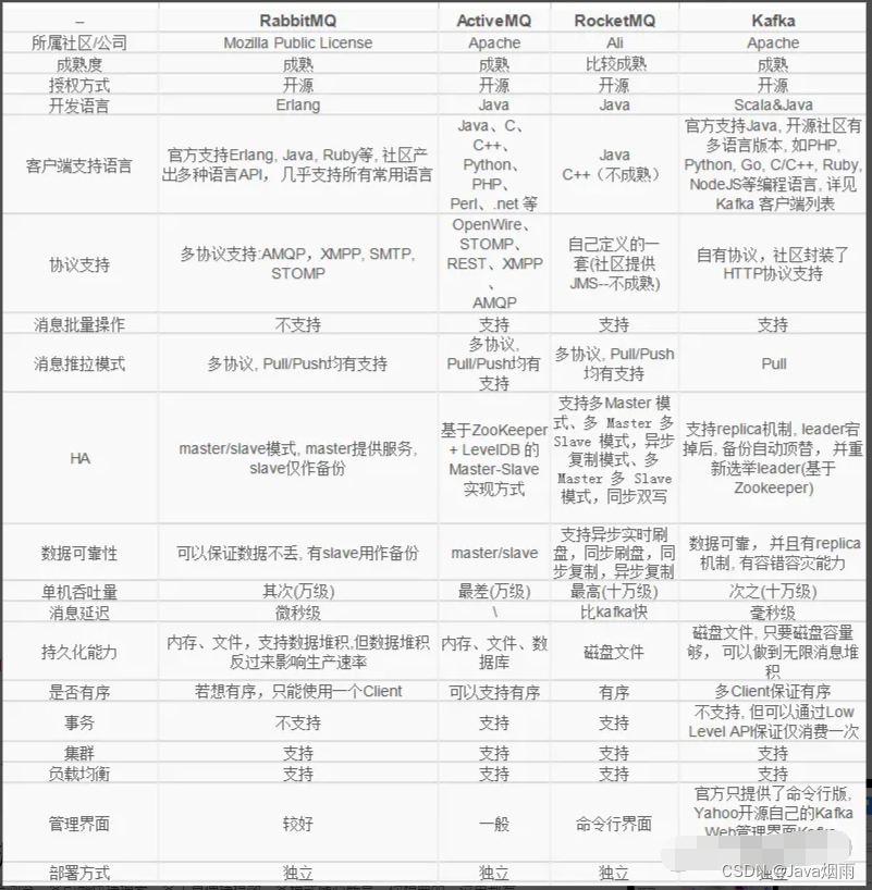 先从比较有代表性的两个MQ(rabbitMQ,kafka),功能对比(图还是Q来的)