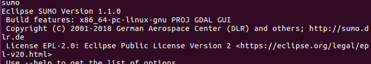 sudo make install7. 验证sumo是否安装成功,输入sumo,将出现以下信息