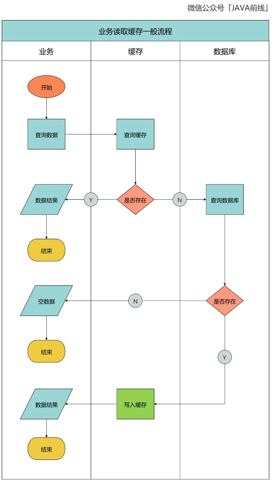 (1) 业务查询数据时首先查询缓存,如果缓存存在数据则返回,流程结束