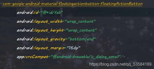 "fab"其实就是id值的内容,与前面得"binding.toolbar"来历相同 ,同时注意到上图中的标签末尾是"FloatingActionButton",其实就是一种按钮,表明我们绑定的视图控件会显示成为一个按钮,而关于重写得onClick方法中的代码,则是对按钮点击操作的具体实现。
