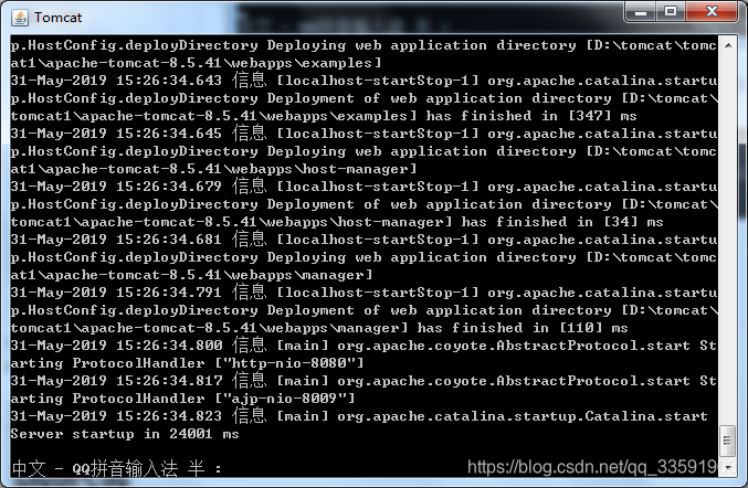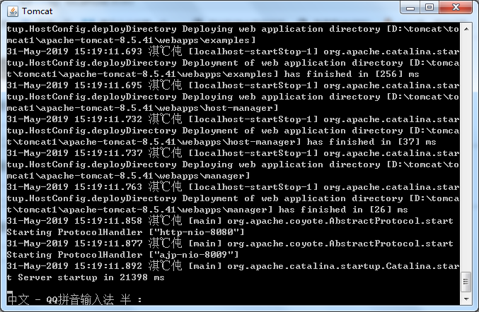 java.util.logging.ConsoleHandler.encoding = GBK再次启动Tomcat,可以看到现在的控制台没有乱码了。