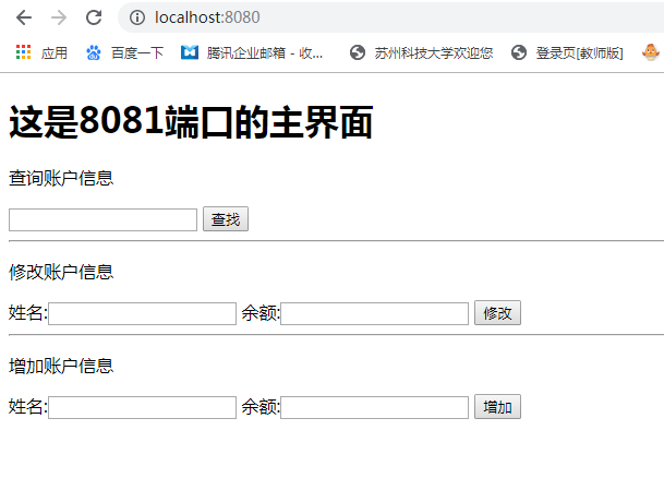 在地址栏中输入localhost,即可看到Nginx已经将请求转发至某一个Tomcat中了,不停刷新的话,会出现不同的界面,即分配到不同的Tomcat中(如果界面一直没有变化,可能是浏览缓存造成的,需要在每次的刷新前清除缓存)