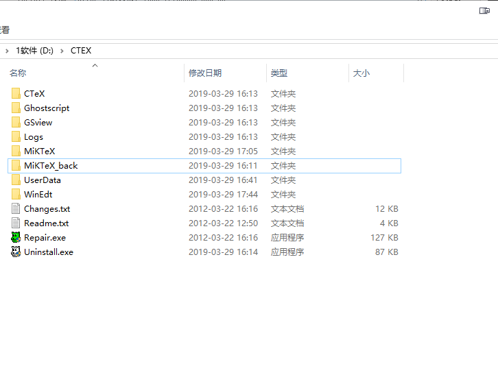 2)将CTEX安装路径中的MiKTeX文件夹重命名为MiKTeX_back(待会儿要用最新版替代MiKTeX)