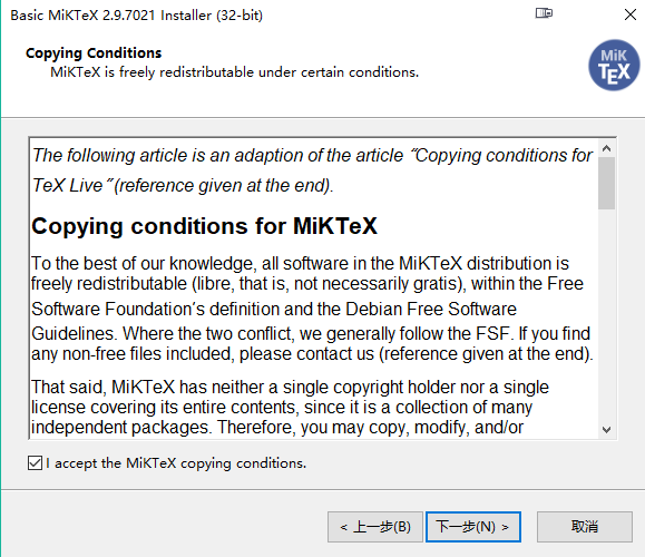 下一步一直到安装完成。安装路径设置D:\CTEX\MiKTeX很重要!