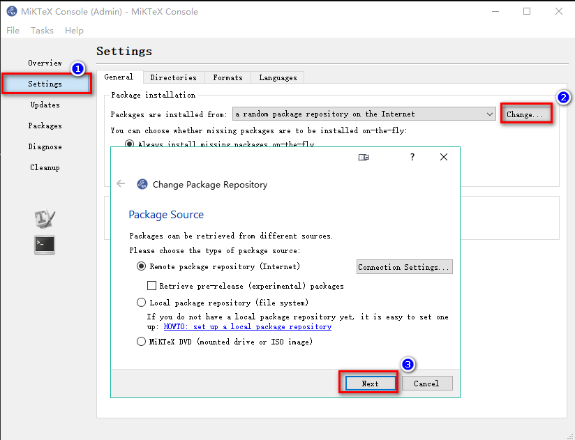 2. 设置MiKTeX Console