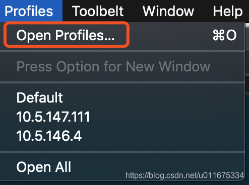 1)点击菜单栏中的 profiles 栏,选中即可