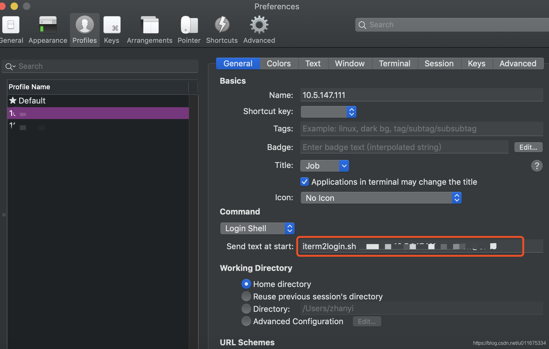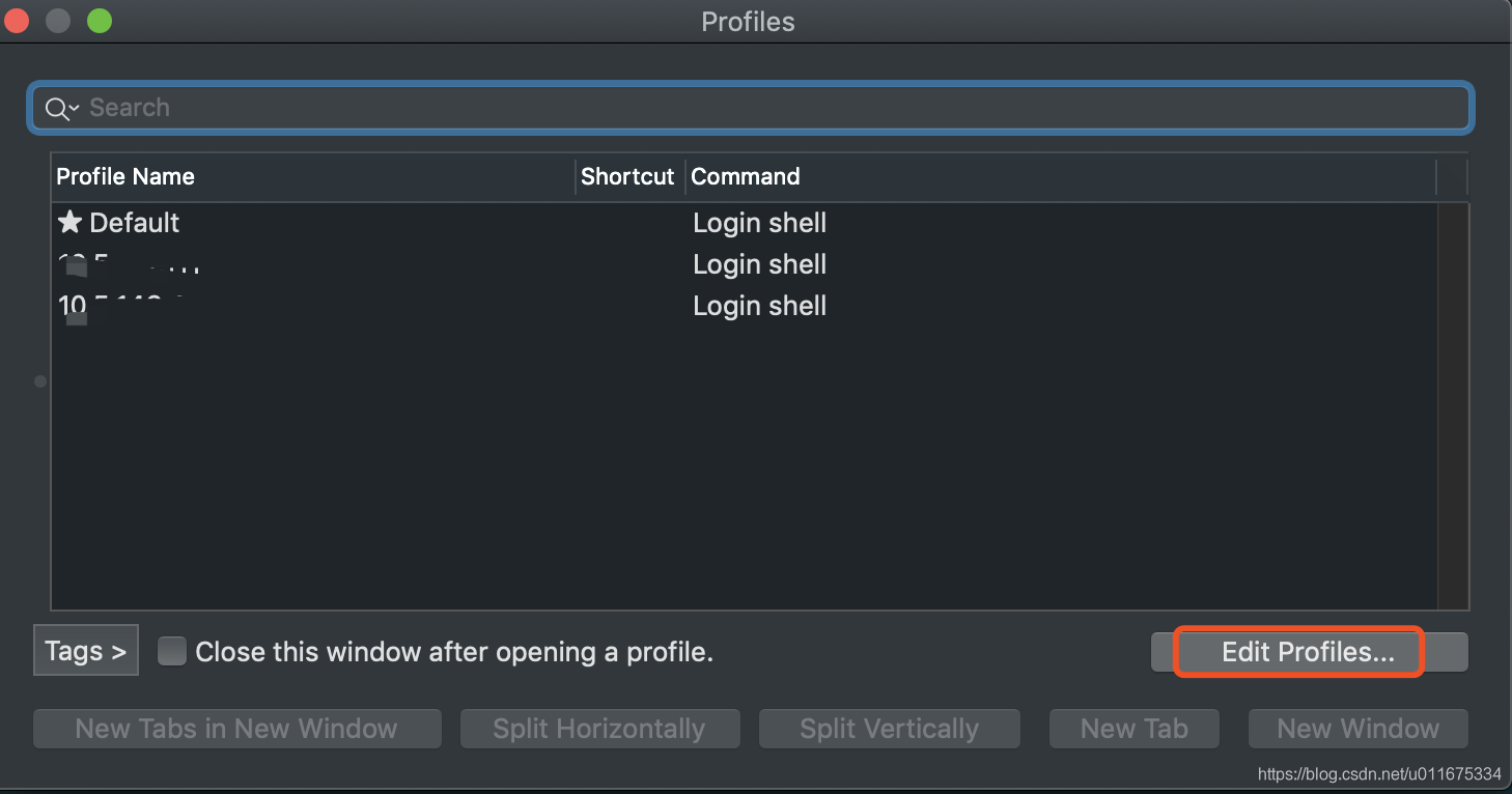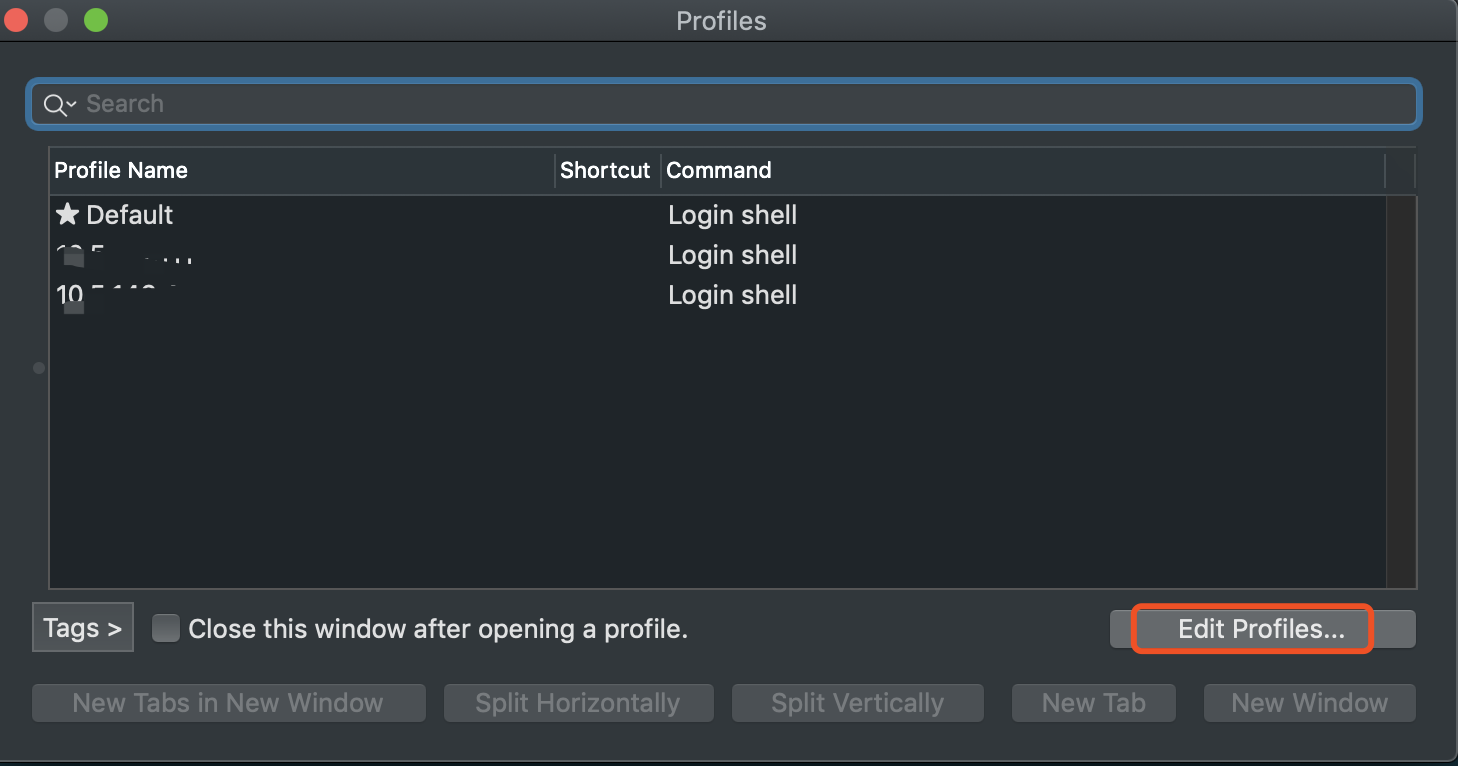 左侧打码部门就是你连接的所有服务器的IP,右侧 Name 栏是你起的名字,这样就是展示在 profiles 下面,一般我都直接以服务器 IP 命名。