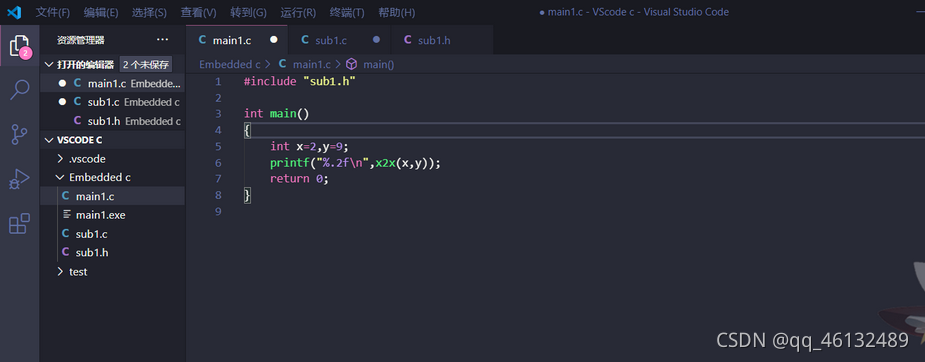 step1:编写main1.c