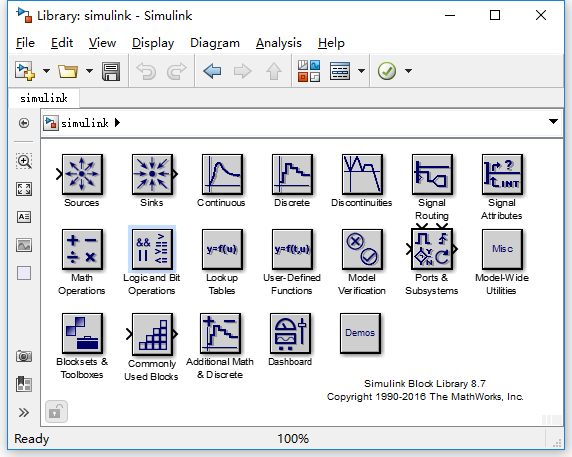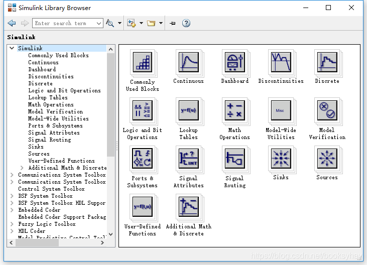 再返回到simulink这个库文件,这里面的各个模块就是Library Browser里面提供的模块。