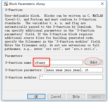 点击“Edit",可以看到sfunxy.m中,所调用MATLAB脚本。