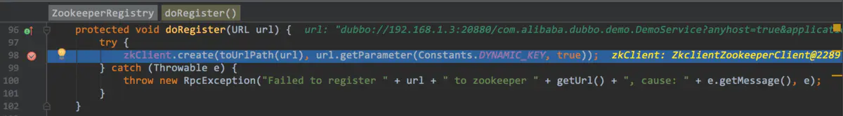 同上周的zookeeper连接一样,这周我们讲的还是一行代码,如下图