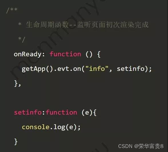 即当收到Info这个事件有发布时,就执行setinfo()函数,处理想着数据,setinfo函数为home.js里的一个方法,其入参e,就是发布事件时所传递的参数。