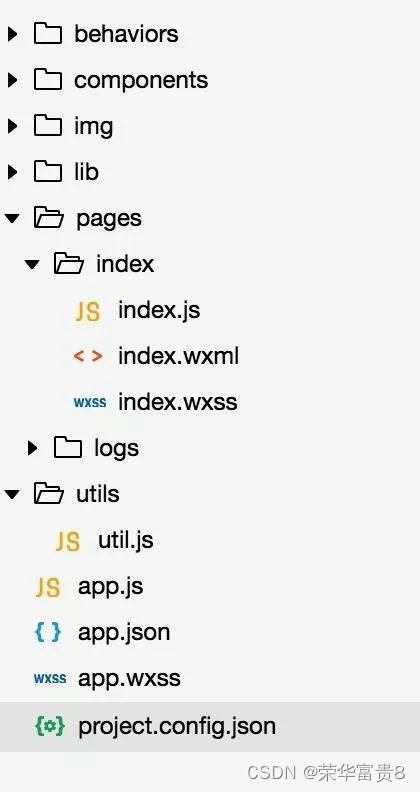2.4 pages/ 下面为具体的页了,比如index, 代表首页,其由四个文件组件, json文件为可选文件,可有可无。