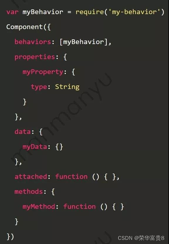 7.2 每个 behavior 可以包含一组属性、数据、生命周期函数和方法,组件引用它时,它的属性、数据和方法会被合并到组件中,生命周期函数也会在对应时机被调用。每个组件可以引用多个 behavior 。 behavior 也可以引用其他 behavior 。