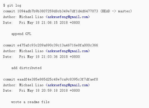 当文本文档已经被多次修改了,我们可以使用git log查看