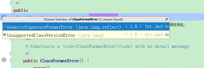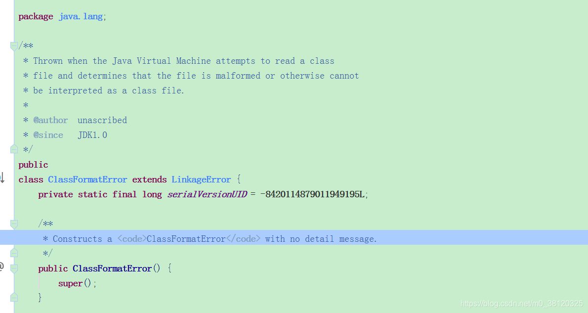 继承自LinkageError,再上一层就是Error了,所以主要看了本类和父类以及两个子类: