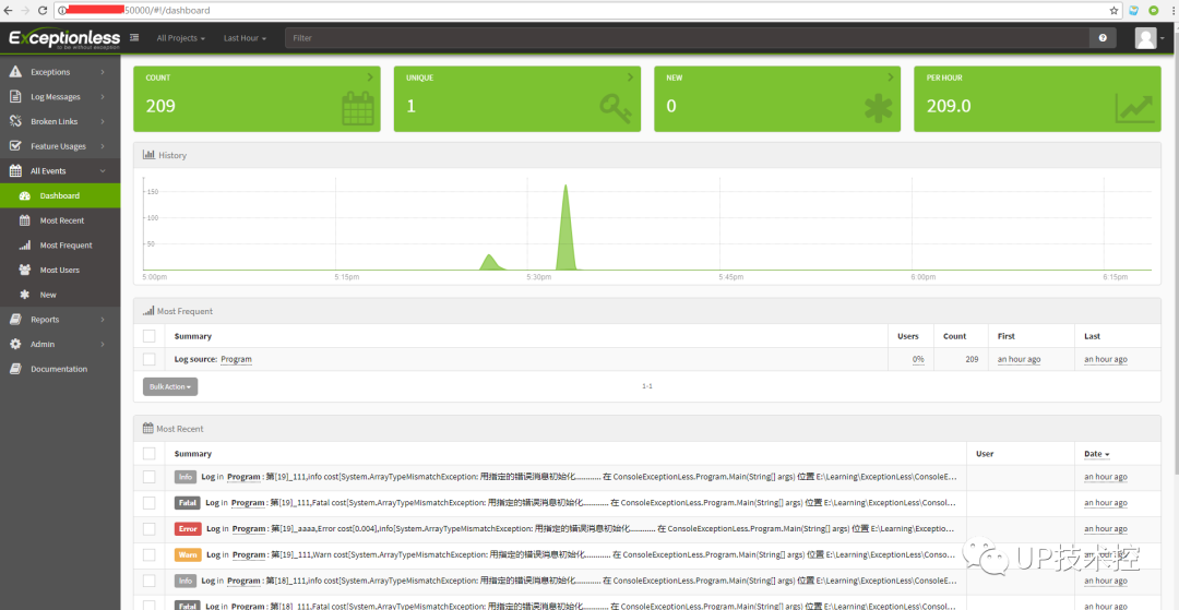 Exceptionless 是一个开源的实时的日志收集框架,它可以应用在基于 ASP.NET,ASP.NET Core,Web Api,Web Forms,WPF,Console,MVC 等技术栈的应用程序中,并且提供了Rest接口可以应用在 Javascript,Node.js 中。它将日志收集变得简单易用并且不需要了解太多的相关技术细节及配置。