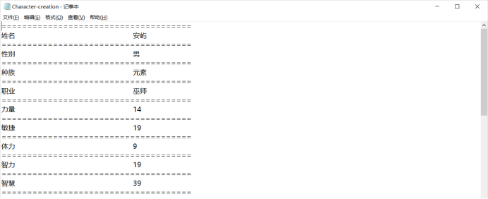最后向用户显示该角色的所有信息,然后询问用户是否满意,如用户不满意则重新创建,若用户满意则程序结束,并将用户创建角色的相关信息写入文件保存。
