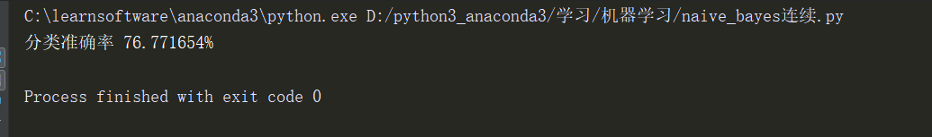 因为划分训练集和测试集是随机划分,因此每次运行的结果可能不一样,平均维持在74%。