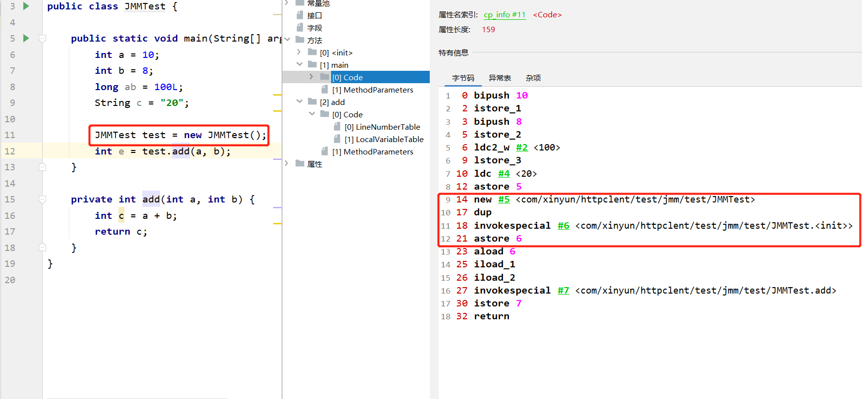 JMMTest test = new JMMTest();对应字节码中的语句为: