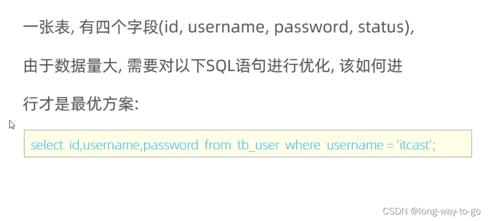 username和password建立联合索引即可,这样不需要回表查询。