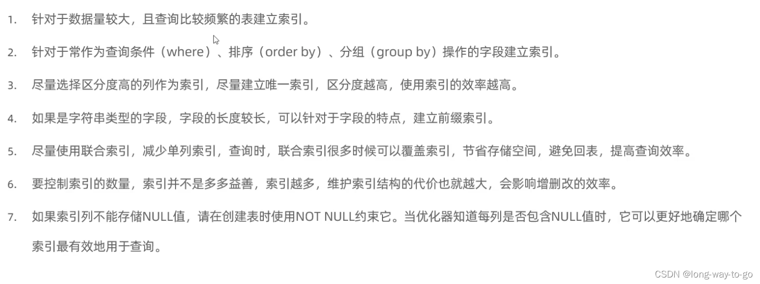 索引的使用规则: