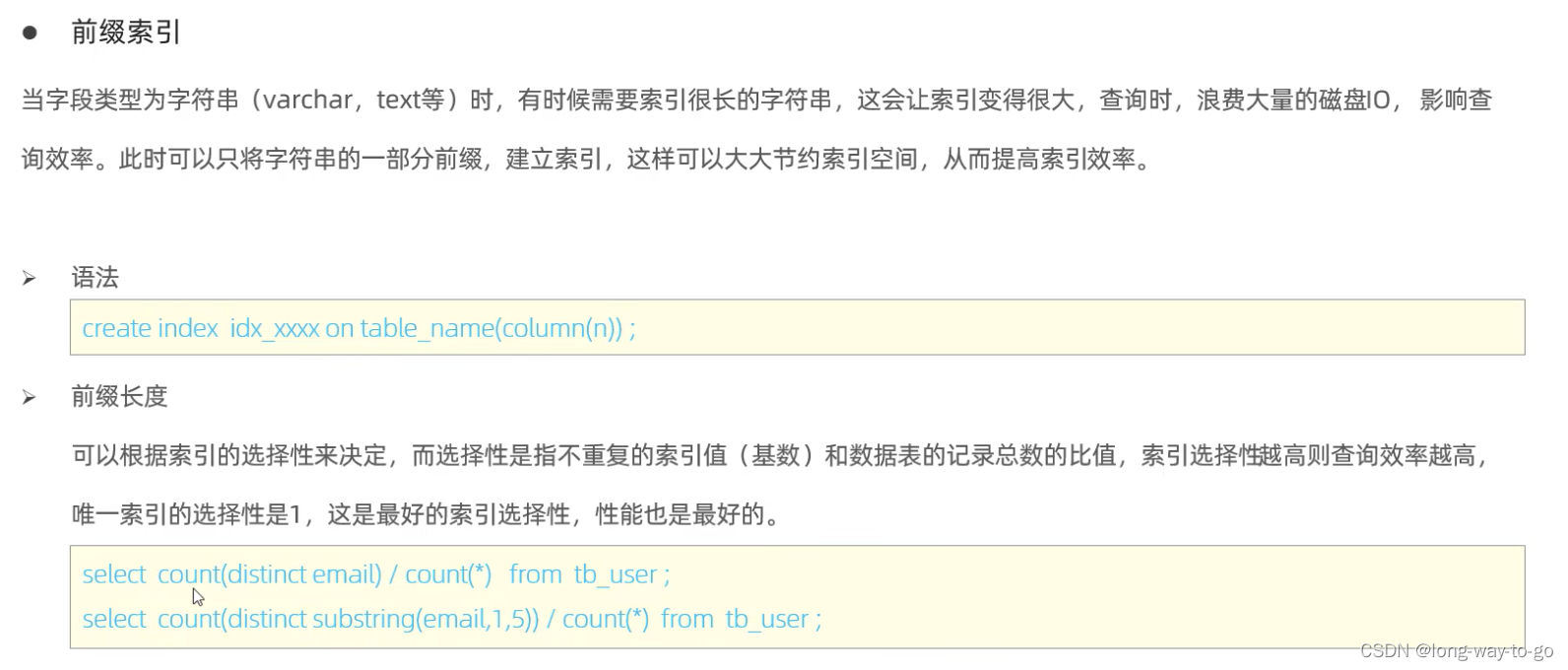 截取长文本的字符串的一部分来构建索引的结构: