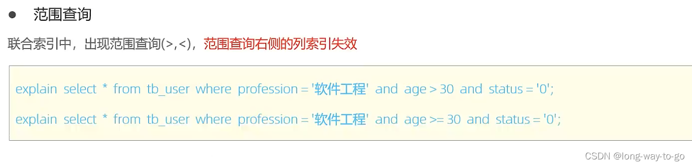 所以业务允许的情况下尽量使用>=或者<=,避免范围查询右侧的列索引失效。