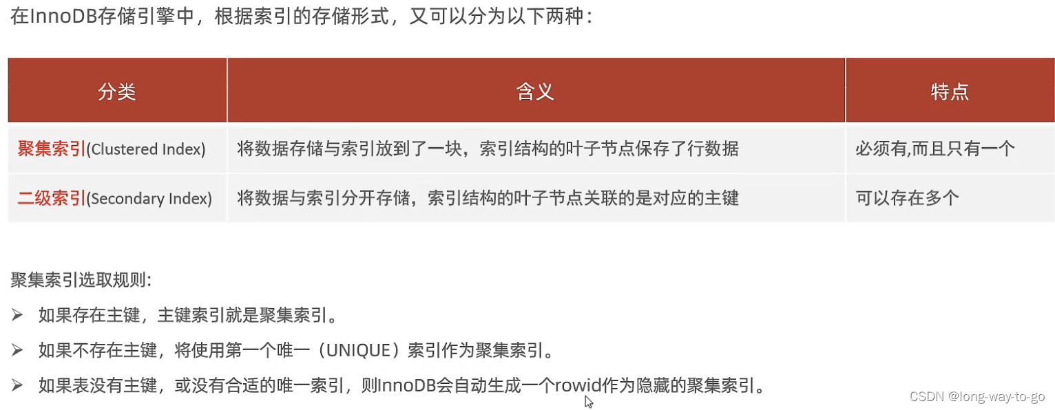 聚集索引、二级索引