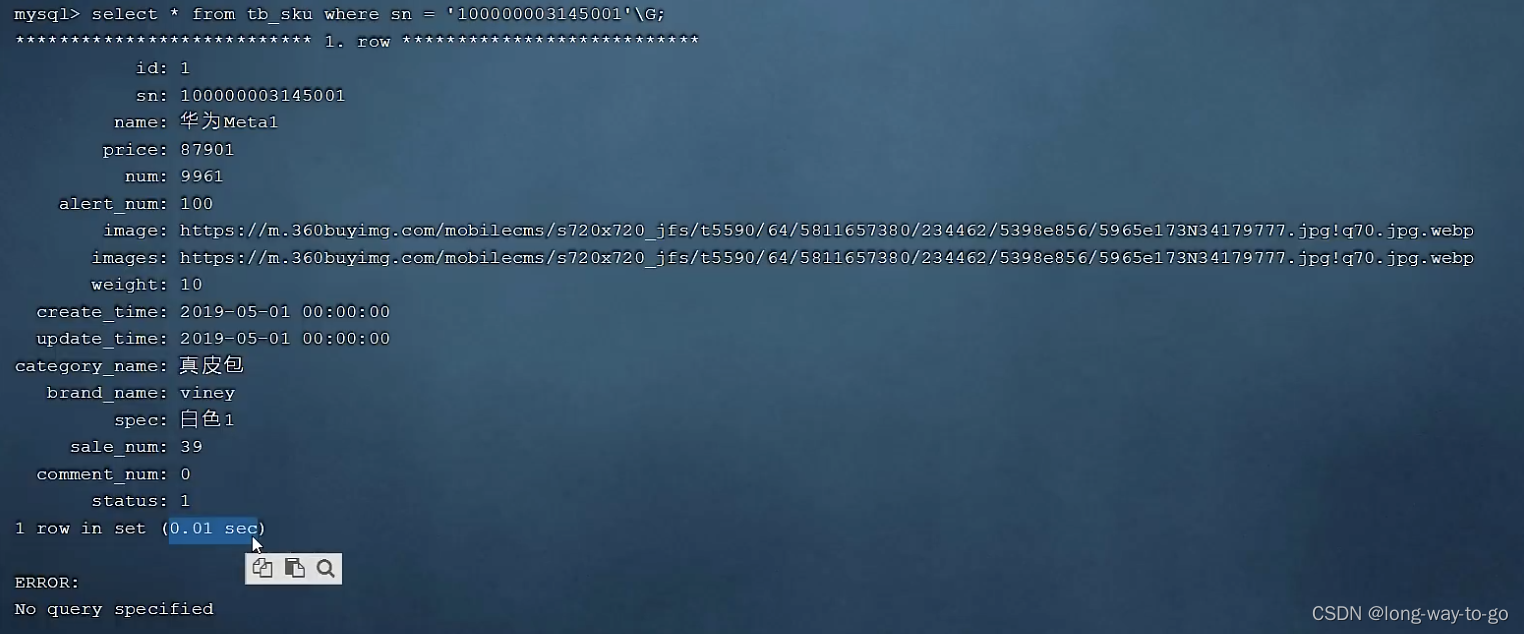 3、构建索引后耗时0.01秒:\G是为了显示整齐。