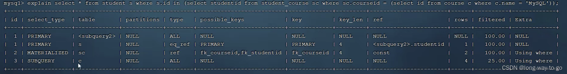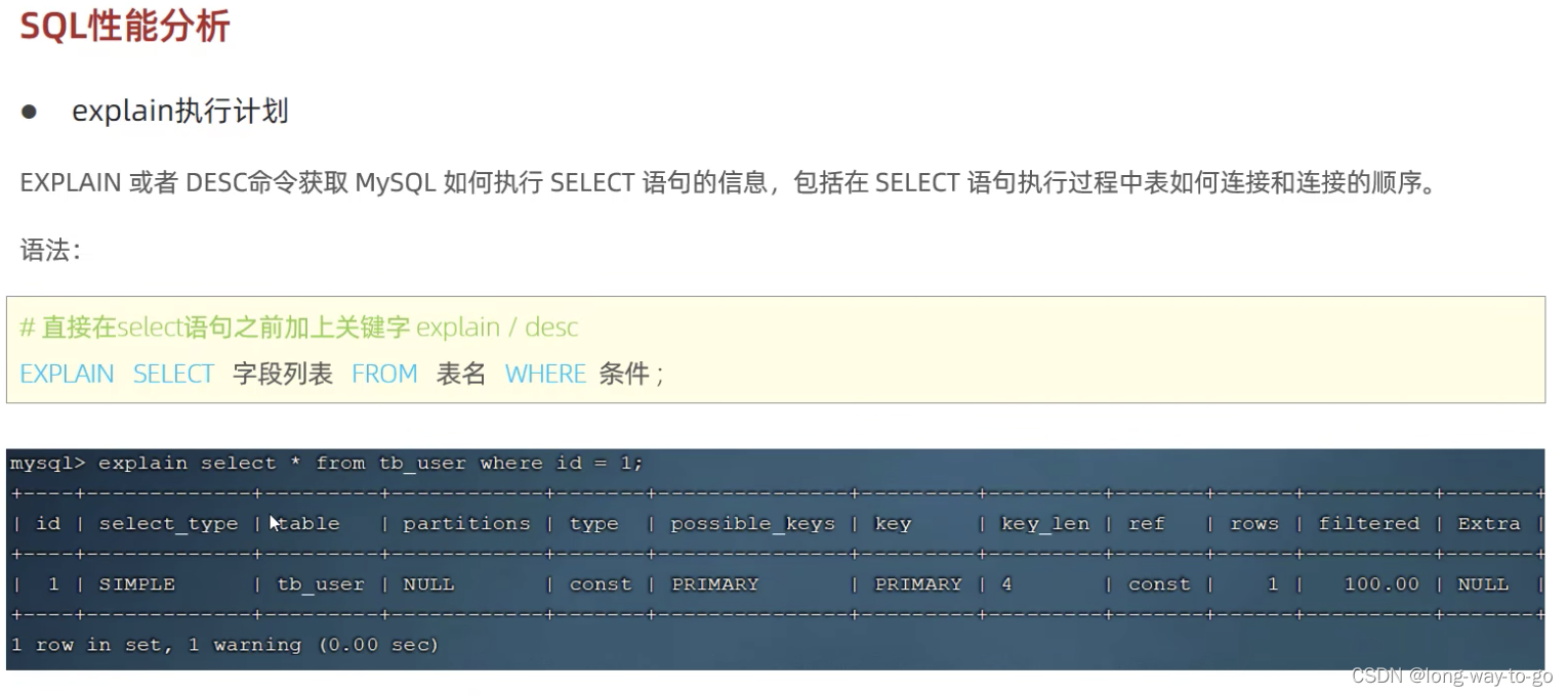 主要关注执行计划中的type、possible_key、key、key_len字段