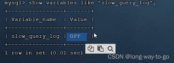 mysql中默认是未开启慢查询日志的,可以用show variables like 'slow_query_log ';这个指令查看是否开启